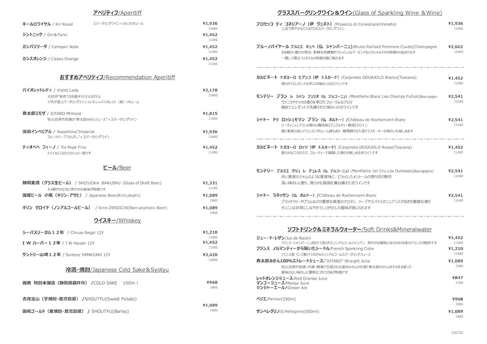 ■2023年夏 レストラン「アイランド」ドリンクメニュー